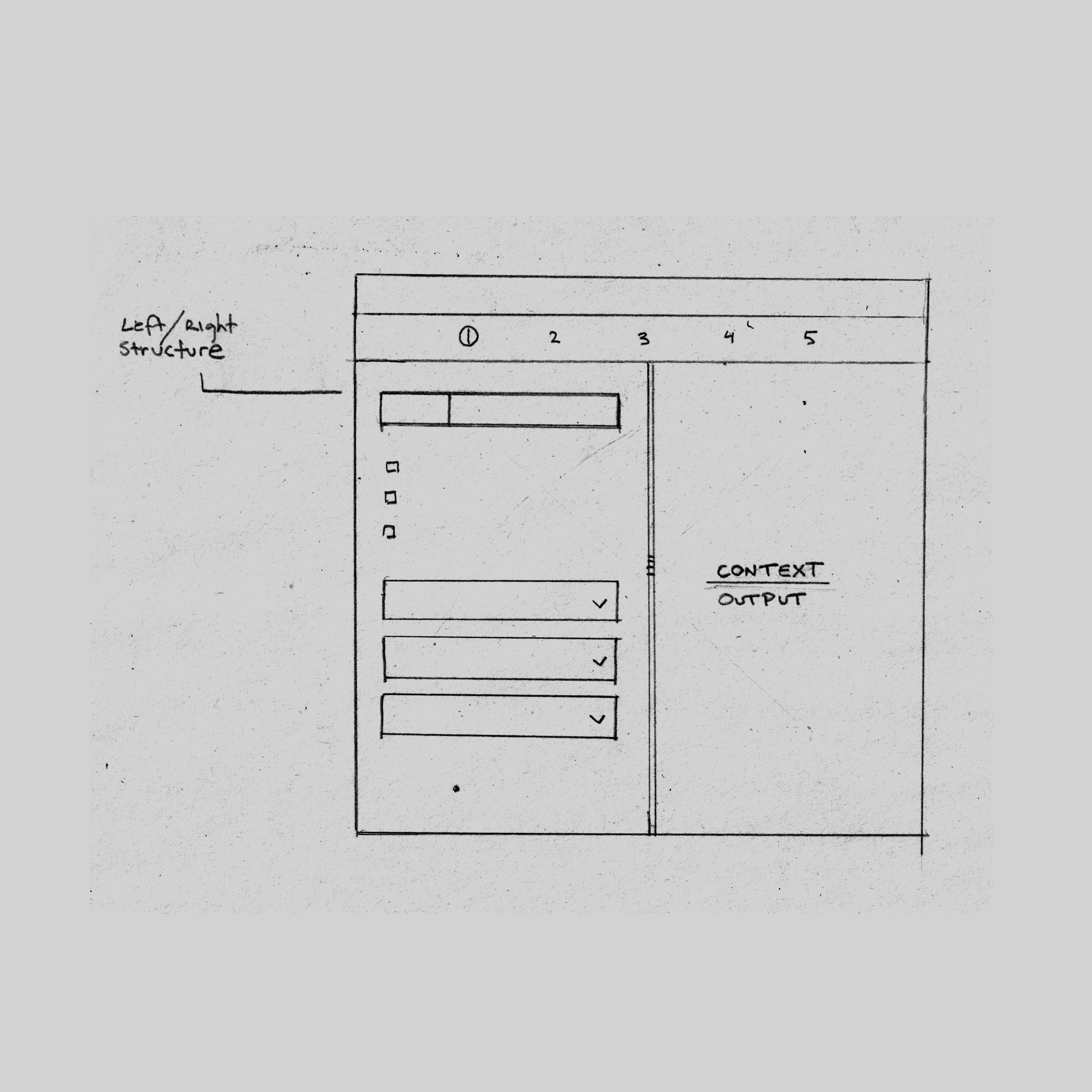 This challenge kicked off an intensive sketching phase. I filled pages with different interface patterns, trying to find the best way to organize the chaos.