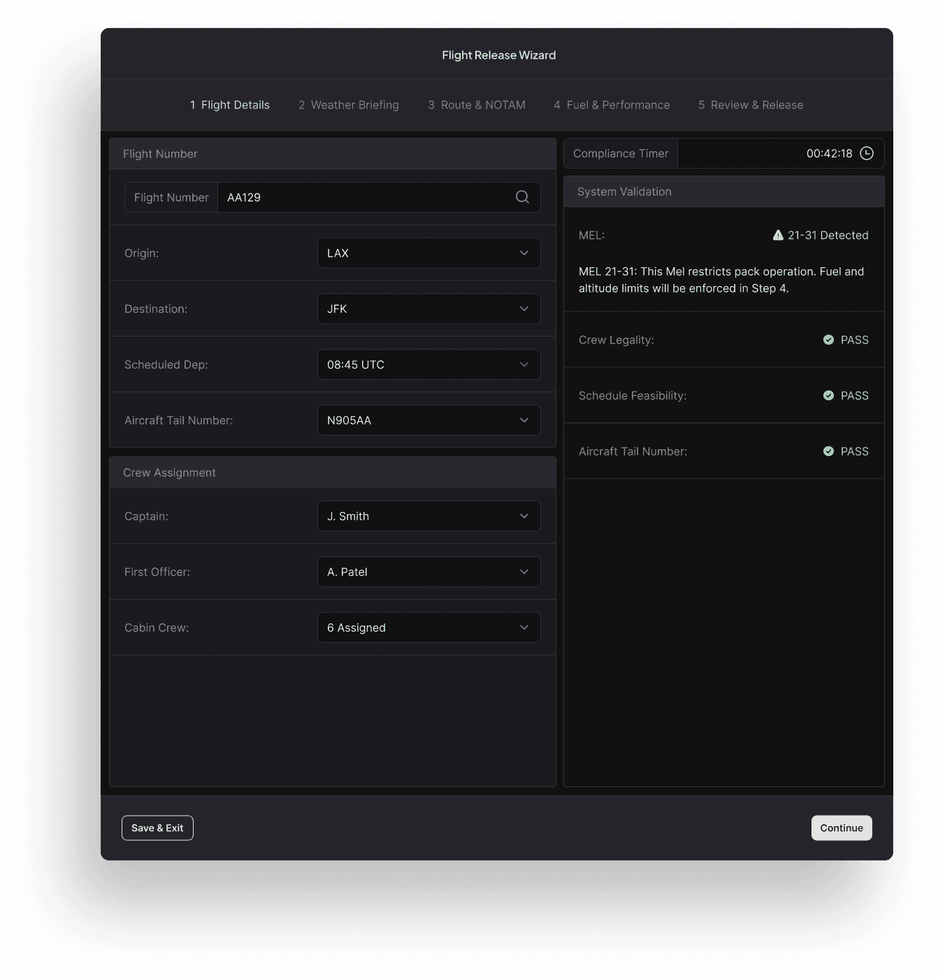 From product definition through final release, I collaborated hand-in-hand with Flight Operations to build a unified Flight Release Wizard: a solution that is compliant and undeniably efficient.